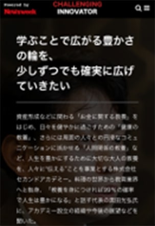 自身がごく普通の会社員だった経験から、大手の金融出身者と違い、相手の身の丈にあった 方法でお金のスキルを伝えることを得意としている。