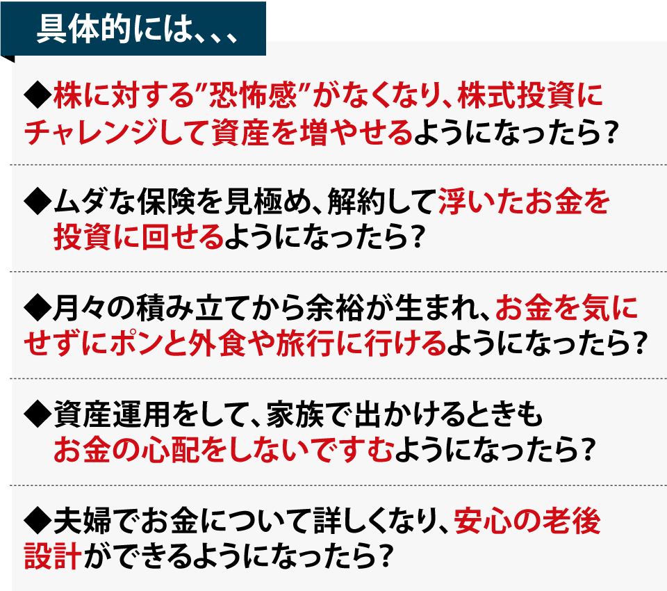 効率的にお金の知識が学べ、資産を殖やすための”具体的アクション”まで