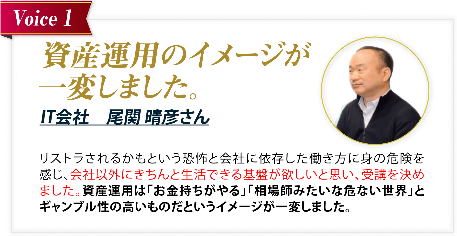 資産運用で失敗しない判断軸をみにつけるために「お金の教育マスタースクール」を受講。