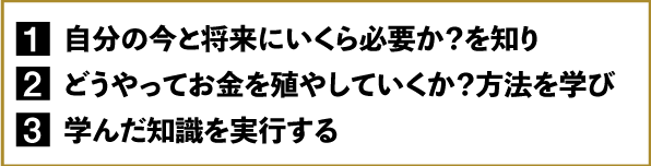 このシンプルな3ステップさえ実行できたら、 5年、15年、30年と、将来、必要十分なお金(資産)を作っていけます。