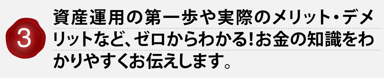 ですから、迷うことなく資産運用の第一歩をスタートできます。
